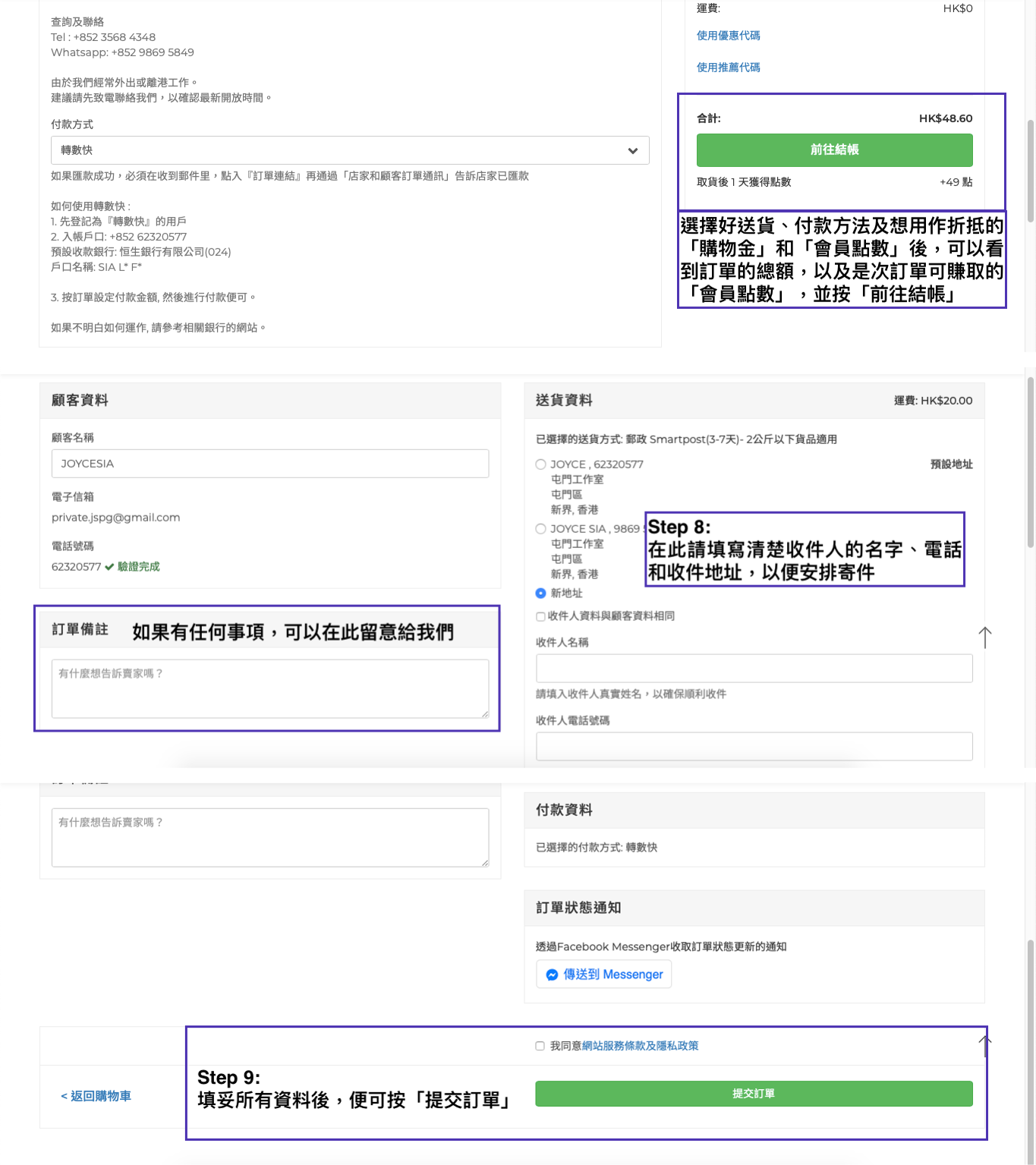 如果存款成功,請將付款收據上載至訂單的「店家和顧客訂單通訊」,或者透過以下方式通知我們: