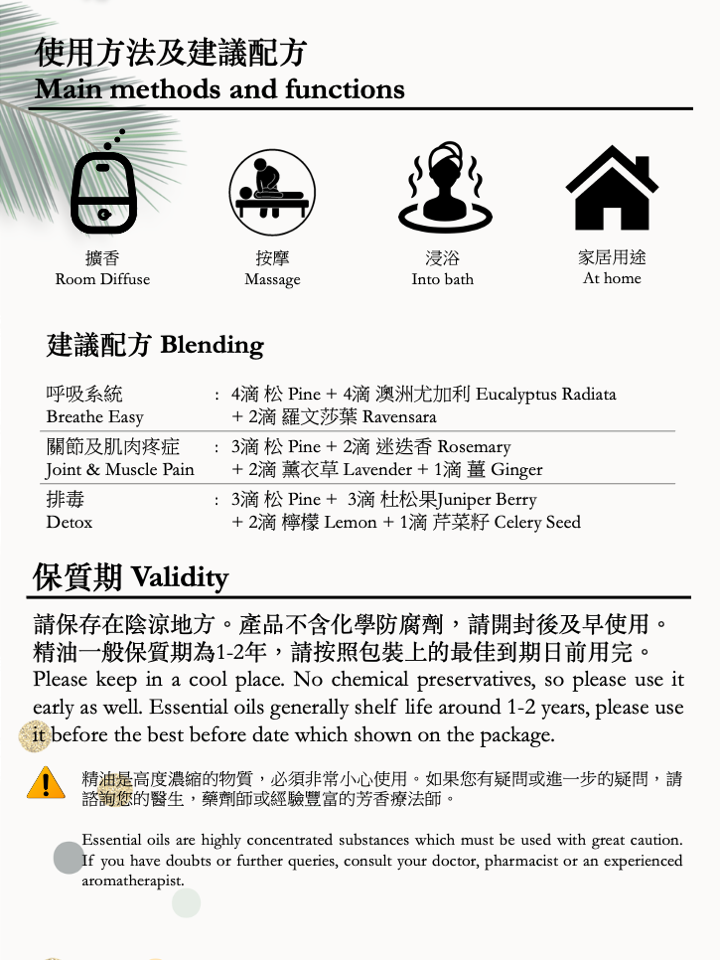 精油一般保質期為1-2年,請按照包裝上的最佳到期日前用完。