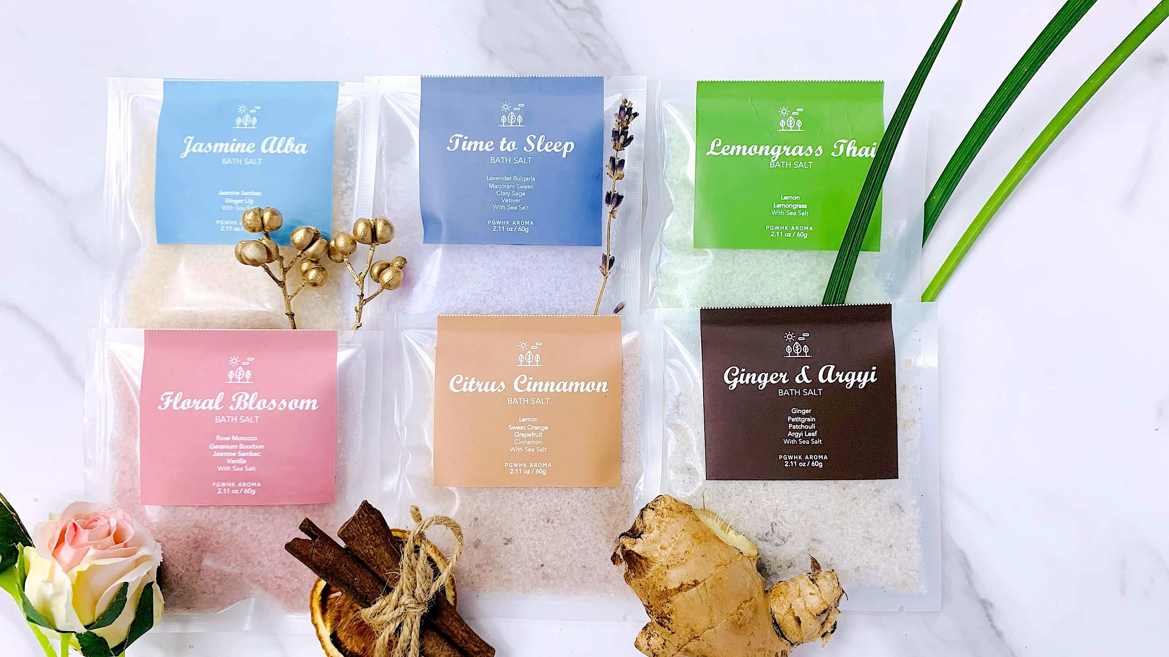 玫瑰浴鹽60g+茉莉花浴鹽60g+薑艾浴鹽60g+薰衣草浴鹽60g+檸檬香茅浴鹽60g+季節限定浴鹽60g (贈送:草本驅寒浸足包 1件) *2019年冬天限定-檸檬肉桂浴鹽60g